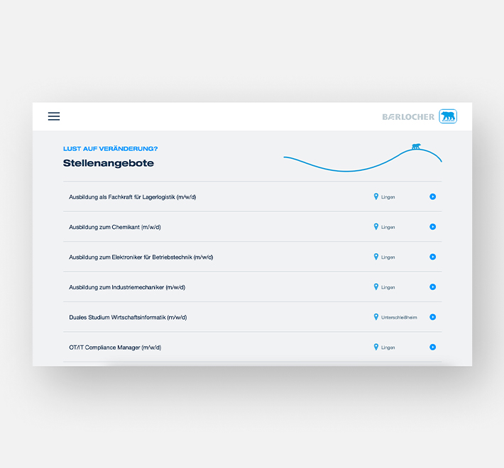 Für das international tätige Chemieunternehmen Baerlocher durften wir das Karriereportal unter karriere.baerlocher.com technisch umsetzen und betreuen seitdem die kontinuierliche Weiterentwicklung der Plattform.